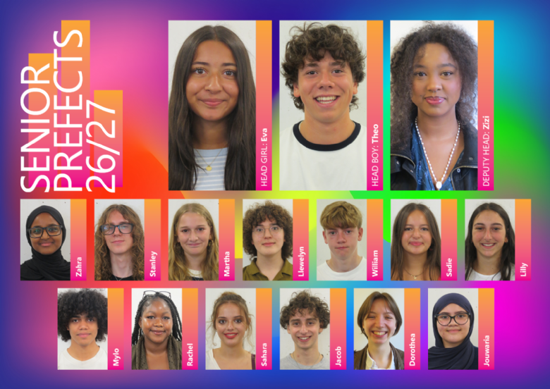 In Year 13 the student body elects a Sixth Form Prefect Team. The Sixth Form Prefects work closely with the Head of Sixth Form organising a number of events such as a Christmas Panto; raising money for charity; taking a key role in the induction of new students to the school and representing the Sixth Form at key events such as Open Day and Parents' Information Evenings.